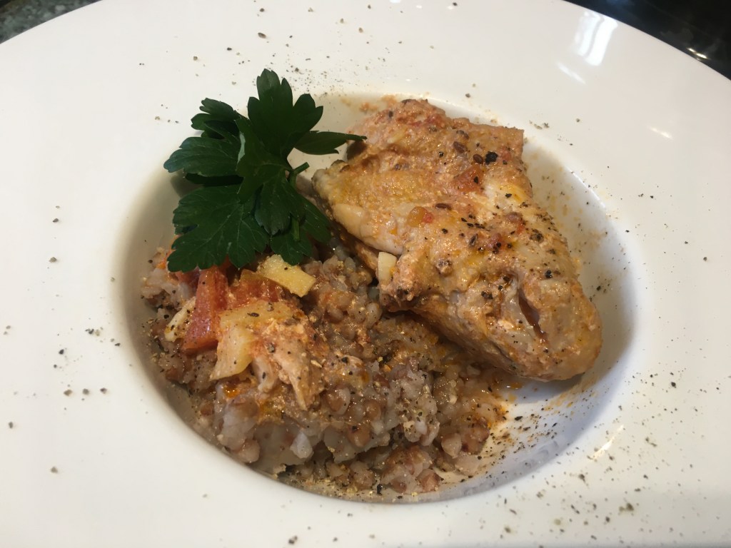 Kommentar: scharf 🙂 das Haus riecht wunderbar nach Gewürze 🙂 Ich habe das Hähnchen mit Buchweizengrütze serviert, mit Reis wäre konventionell 🙂