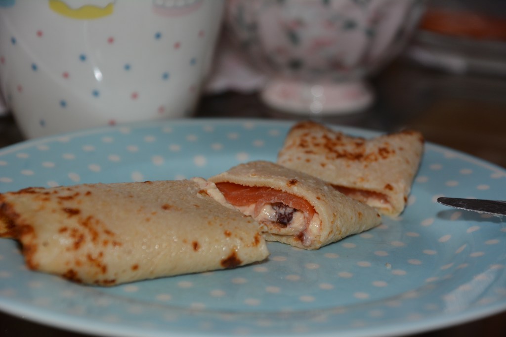 Quelle: keine 🙂 wir experimentieren gerade mit Hafermehl 🙂 Die Pfannkuchen haben wir mit Lachs und Meerrettich-Sauce gegessen (das Rezept vom 14.03.2021)