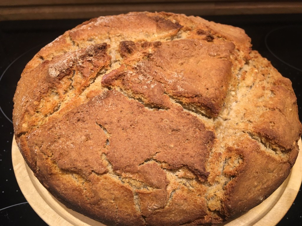 Zutaten: 500 Mehl (aus eigenem Anbau, Roggen 350 g und Hafer 150 g), 50 g Trockensauerteig, 400 ml Wasser, 20 g Hefe (Frisch), 1 EL Honig (Waldhonig), Salz 1 TL, Brotgewürz (Koriander, Kümmel, Anis)