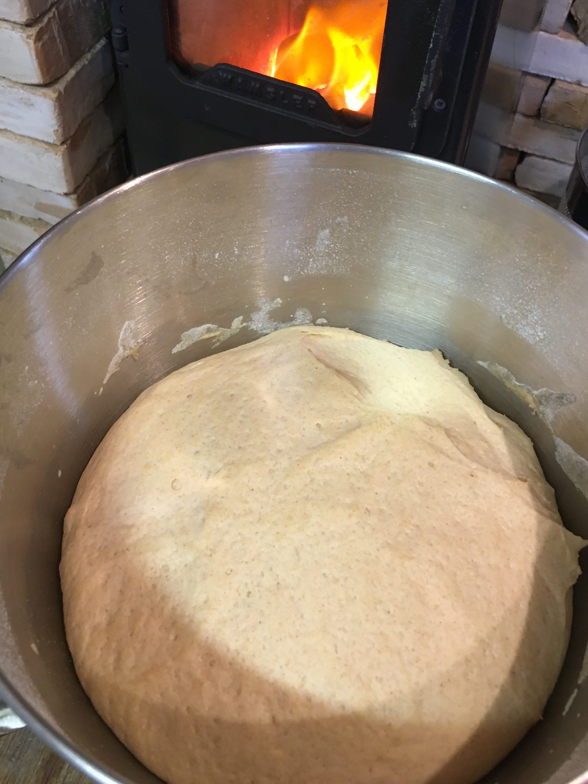 Zitaten: 300 ml Wasser, 1 TL Zucker, 20 g Hefe, 1 TL Salz, 3 EL Olivenöl, 500 g Mehl (ich hatte Dinkel aus eigenem Anbau)