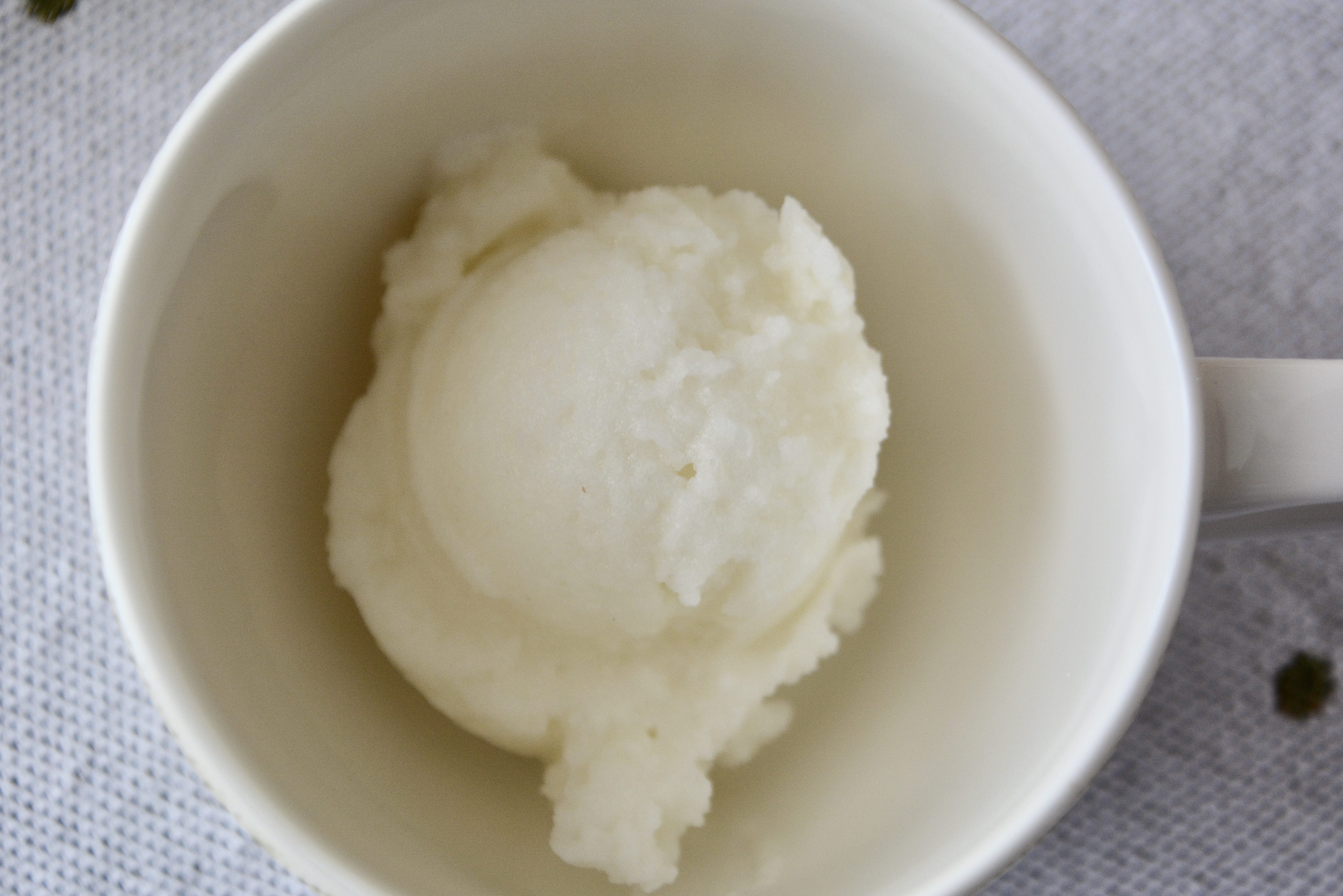 Zutaten: 350 ml Püree einer Honigmelone, 50 ml Wasser, 50 g Zucker, 2 Eiweiß (Eischnee), 50 ml Weißwein; Eismaschine arbeitet ca. 45 min