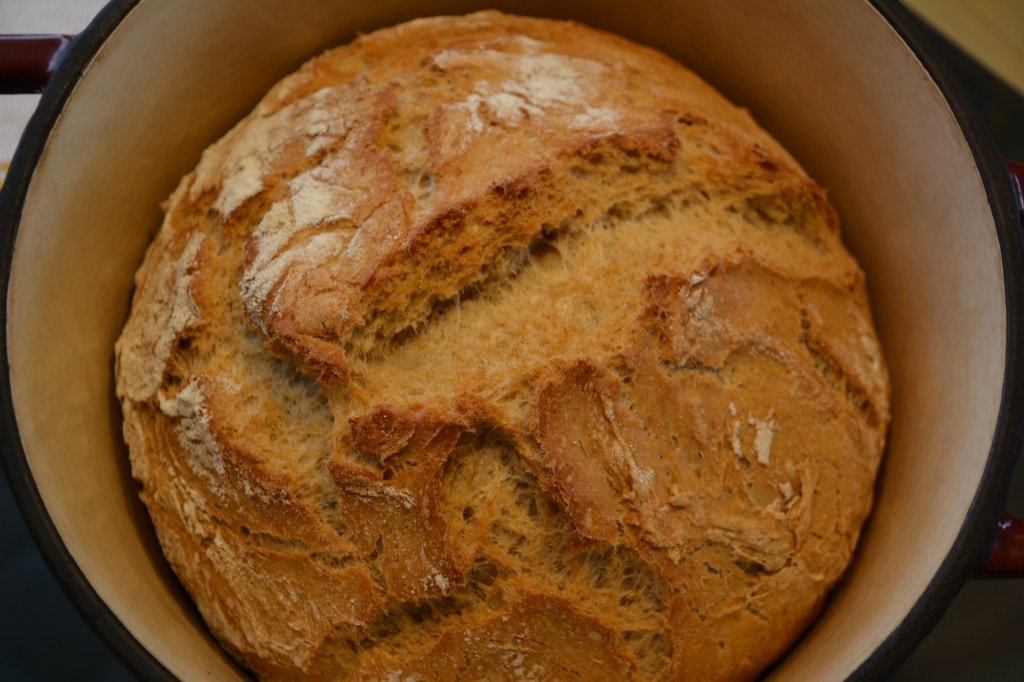 Alle Zutaten in eine Küchenmaschine geben und 12-15 Minuten zu einem glatten Teig kneten lassen, ca. 2 Stunden reifen lassen. Ich einem vorgeheizten Ofen (Umluft) bei 250 Grad 15 Minuten, danach bei 230 Grad 15 Minuten, danach bei 200 Grad 10 Minuten backen. Ich backe in einem gusseisernen Topf.