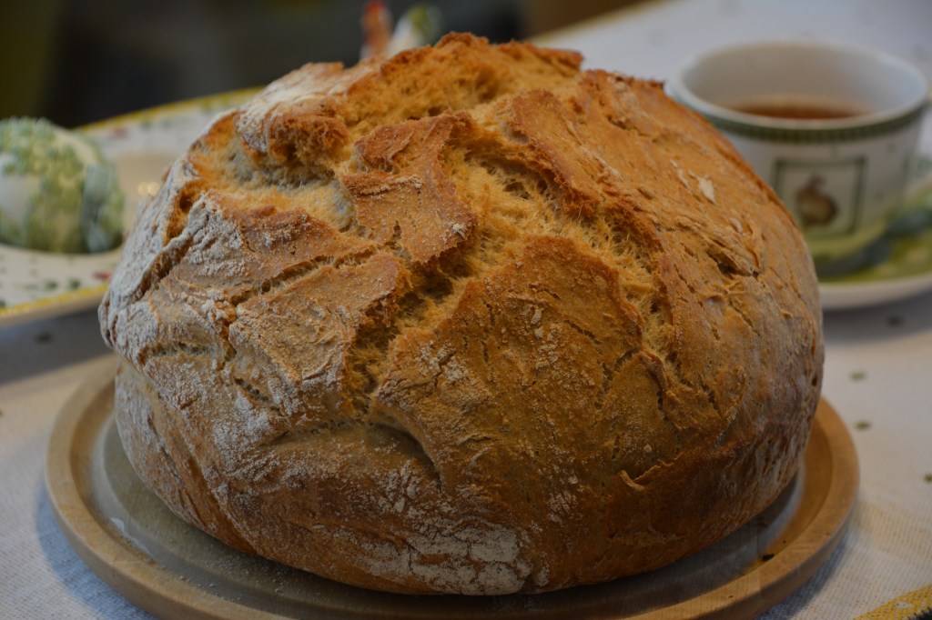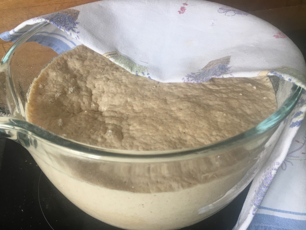 Zutaten: 1 kg Mehl (ich hatte eine Mischung aus Dinkel, Weizen, Hafergrieß und Weizengrieß aus eigenem Anbau), 660 ml Bier, 80 ml Wasser, 20 g Hefe