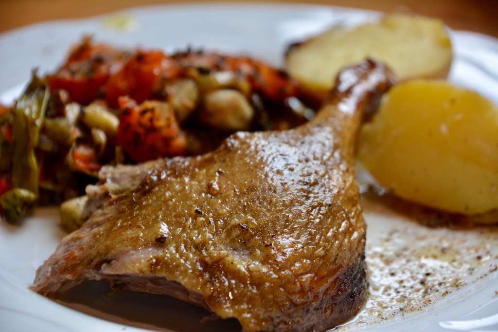 Kommentar: zur Ente haben wir geröstete im Holzofen Kartoffeln serviert 🙂