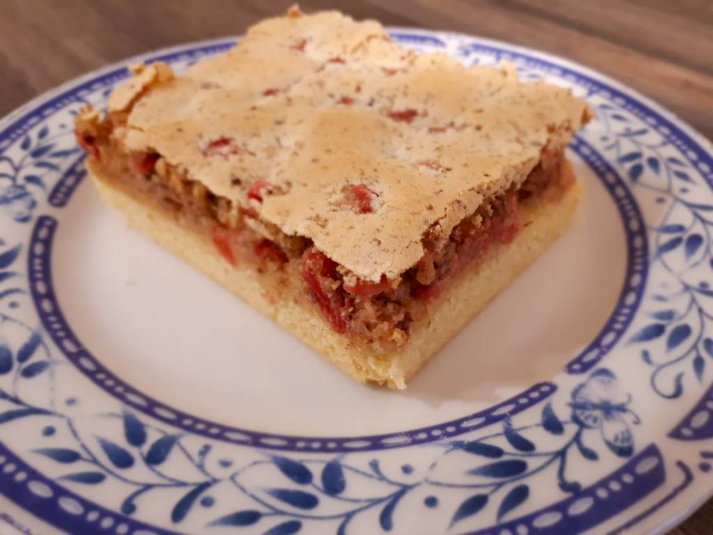 Zutaten: Mürbeteig: 400 g Mehl, 1 TL Backpulver, 150 g Zucker, 1 Prise Salz, 2 Eier, 200 g Butter, kalt ; Belag: 550 g Johannisbeeren, frisch oder TK aufgetaut, 6 Eier, 1 Prise Salz, 250 g feinen Zucker (2 x 125g), 2 Pckg Vanillezucker, 200 g Haselnüsse, gemahlen