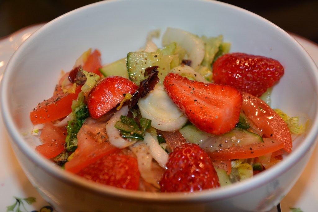 Kommentar: der Knaller ist – die frischen Erdbeeren, die für tolle Kombination unterschiedlicher Geschmäcke mit dem Gemüse sorgen 🙂