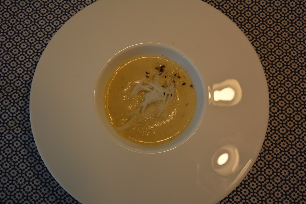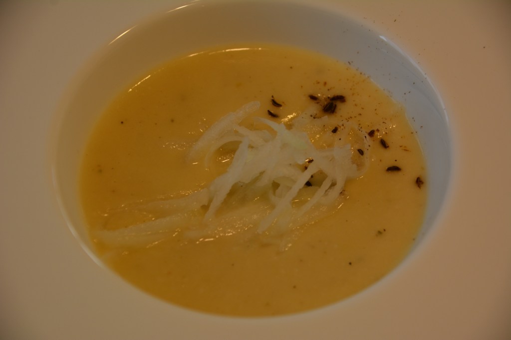 1/4 Kohlrabi reiben, zur Seite stellen, danach wird das zum Dekorieren benutzt. Alles Gemüse schneiden und im Öl andünsten. In Brühe 20 Minuten weich kochen, pürieren, Sahne ergänzen, mit Essig und Gewürzen abschmecken
