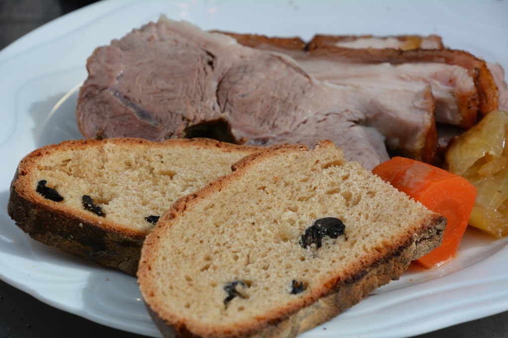 Alle Zutaten zum Teig vorbereiten und 2 Stunden reifen lassen. Im vorgeheizten Holzofen bei 230 Grad 50 Minuten backen