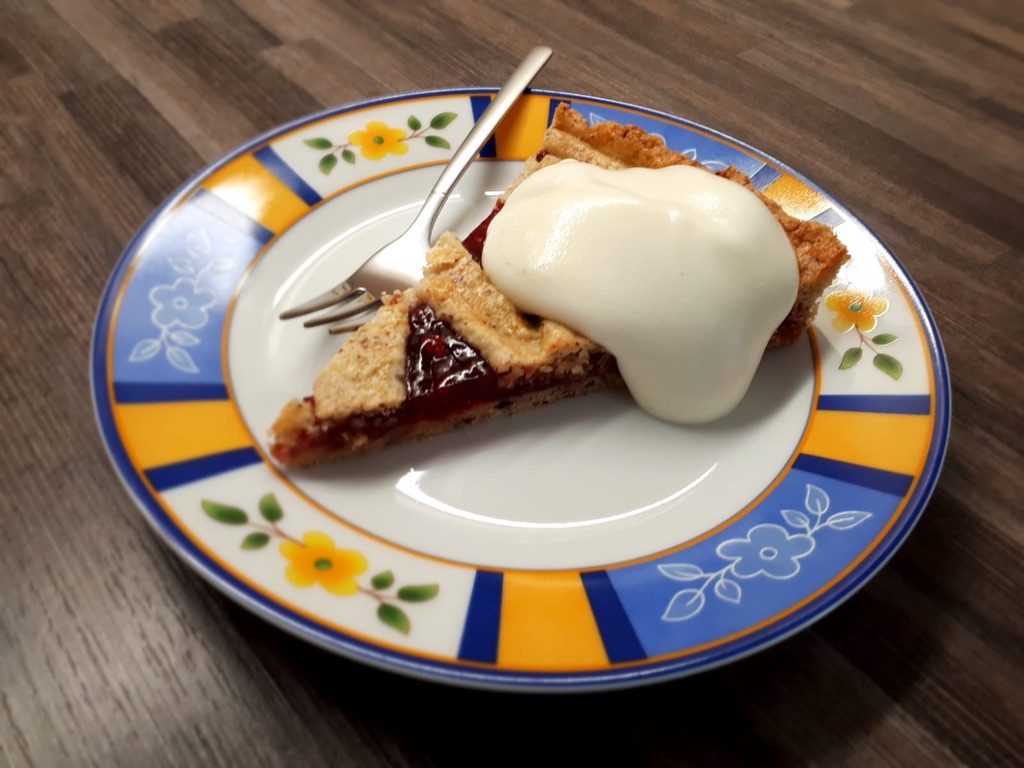 Zur Linzer Torte passt super Vanilleeis oder Schlagsahne.
