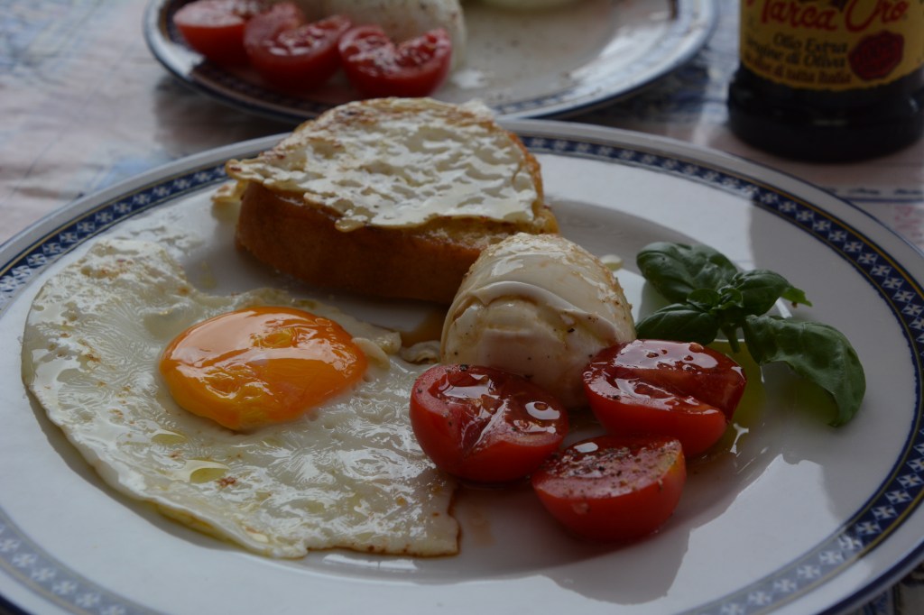 Zutaten: Tomaten beliebig viel, Mozzarella -Kugeln, Basilikum-Blätter, Balsamico Essig, Olivenöl, Salz, Pfeffer; das Dressing (100 ml Öl, 30 ml Essig, Salz, Pfeffer); die Tomaten und der Käse mit dem Dressing übergießen