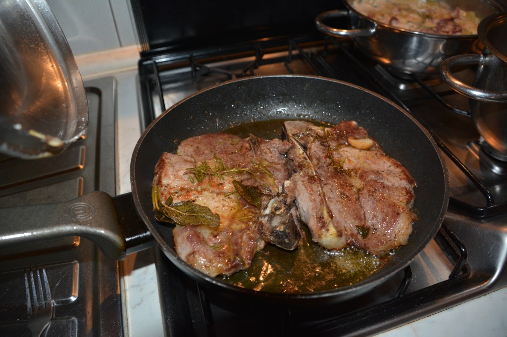 Zutaten: 3 Zwiebeln, 2 Knoblauchzehen, 3 frische Feigen, 50 mi Balsamico Essig, 150 ml Rotwein, Blätter Salbei, Rosmarin, Salz, Pfeffer, Olivenöl