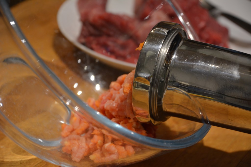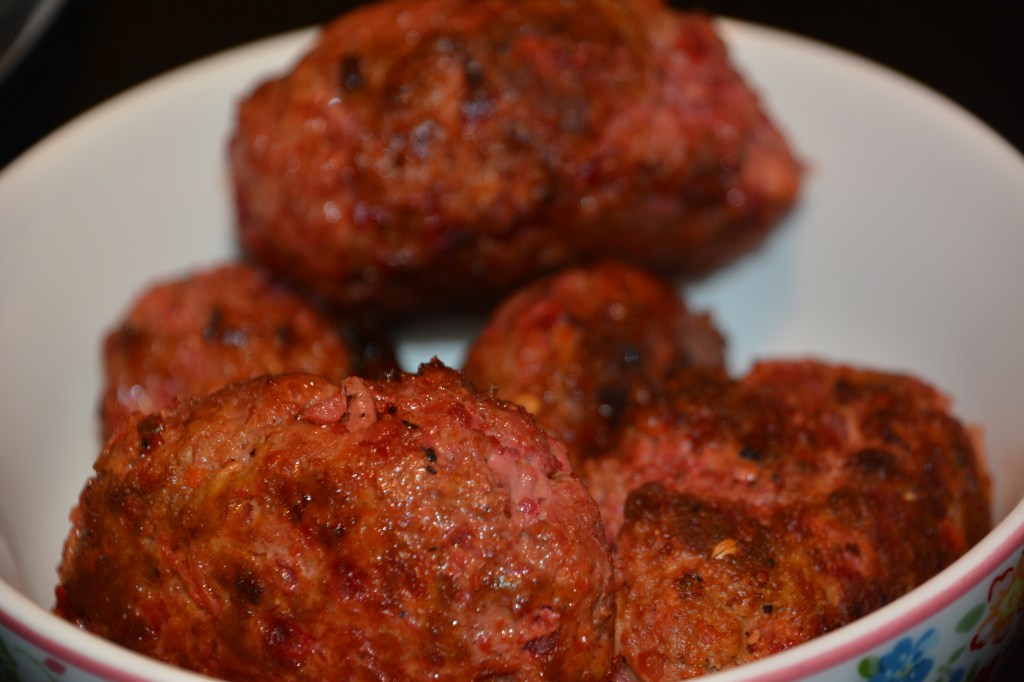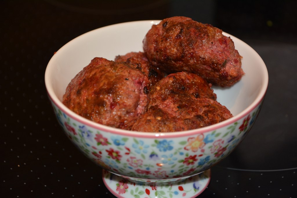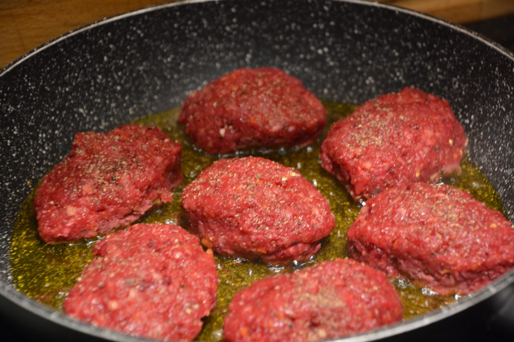 Zutaten: 500 g gemischtes Fleisch, 1 Rote Bete, 1 Karotte, 1 Kartoffel, 1 Zwiebel, 1/2 Kopf-Sellerie, 1/2 Brötchen, 2 Eier, etwas Milch, Salz, Pfeffer, Koriander-Körner; das Gemüse und das Fleisch durch den Fleischwolf durchlassen, vermischen, Brötchen, Eier, Milch dazu geben, würzen; in Öl anbraten