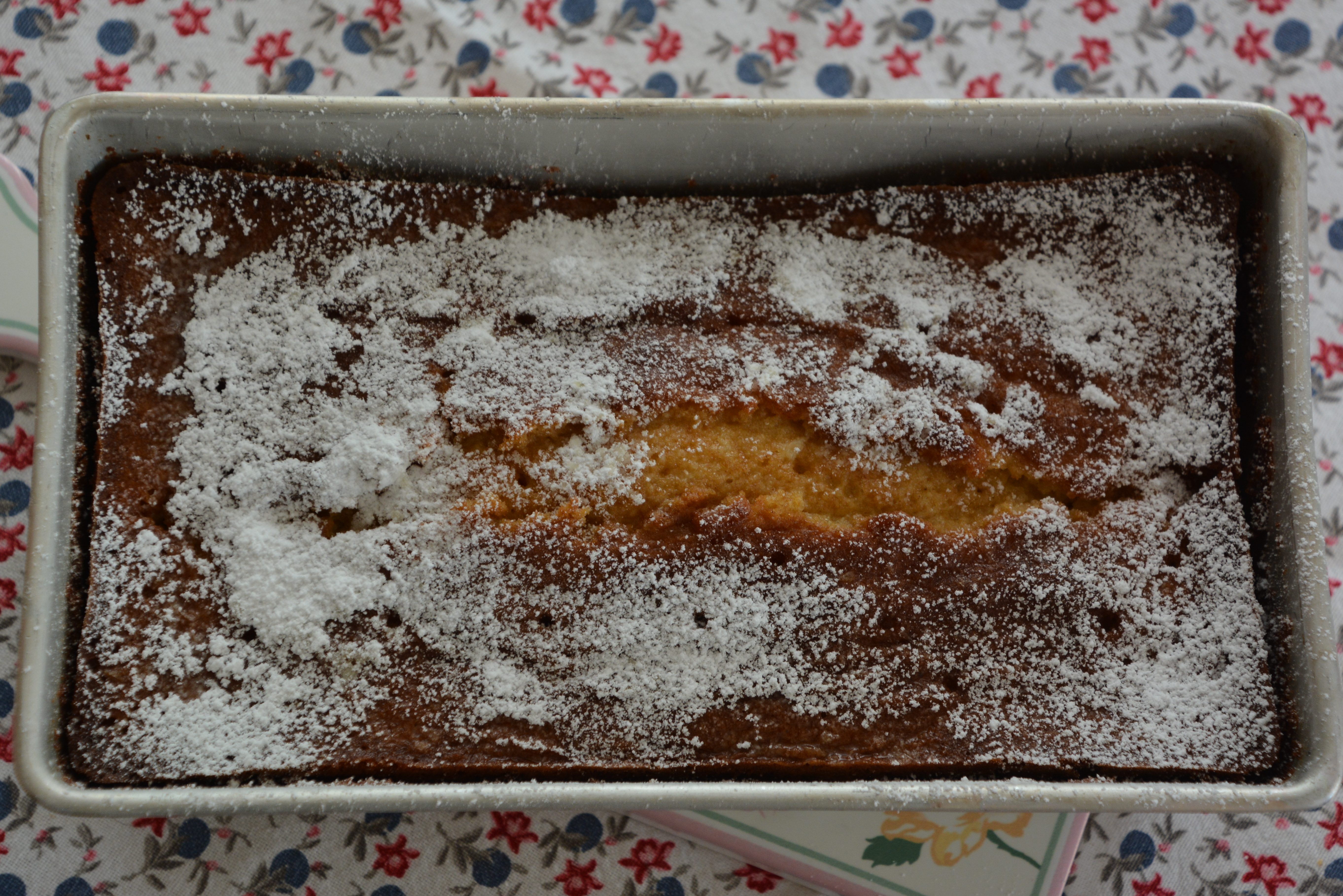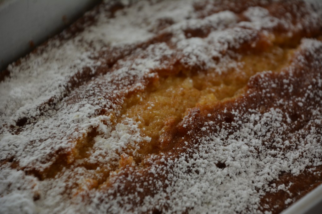 Zutaten für einen Zitronenkuchen: 170 g Butter, 2 Eier, 170 g Rohzucker, Salz, 5 g Backpulver, 170 g Mehl, Saft und abgeriebene Schale 2 Bio-Zitronen, Puderzucker, gesiebt; die Butter mit Zucker schaumig schlagen, die Eier trennen, die Eigelbe und den Zitronenabrieb zur Butter-Zucker-Mischung geben, erneut aufschlagen, das Mehl mit dem Backpulver darüber sieben, kurz untermischen, das Eiweiß steif schlagen und die Masse rühren und sie zu lockern, die Backform einfetten, die Masse in die Backform gießen, goldbraun bei 170 Grad im vorgeheizten Backofen backen. Kleine Löcher mit einem Holzspieß stechen, mit dem Saft den Kuchen übergießen, 1 Tag ruhen lassen.