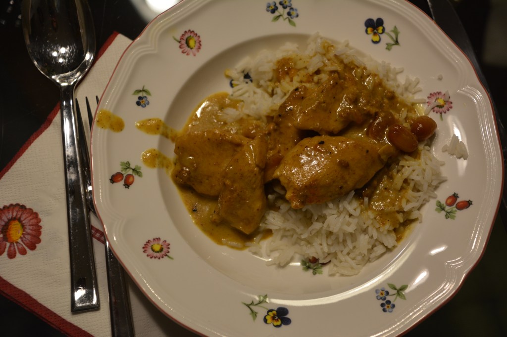Zutaten: 500 g Filet schneiden und scharf in Öl anbraten, würzen (Salt, Pfeffer, süße und scharfe Paprika-Pulver ca. je. 1 TL, Curry-Pulver-beliebig viel 🙂 Erdnüsse (beliebig), 300 ml Sahne und 4 EL Aprikosen Marmelade zum Fleisch geben, 20 Minuten köcheln