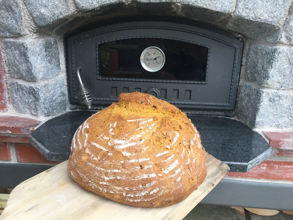 Zutaten: 600 g Weizenmehl, 300 g Süßkartoffeln (püriert), 40 g Hefe, 250 ml Milch, 3 Chilischoten, Salz, 1 EL Kümmel; alle Zutaten zu einem glatten Teig verarbeiten, 2-3 Stunden reifen lassen, in einem vorgeheizten Holzofen bei 180 Grad 1 Stunde backen