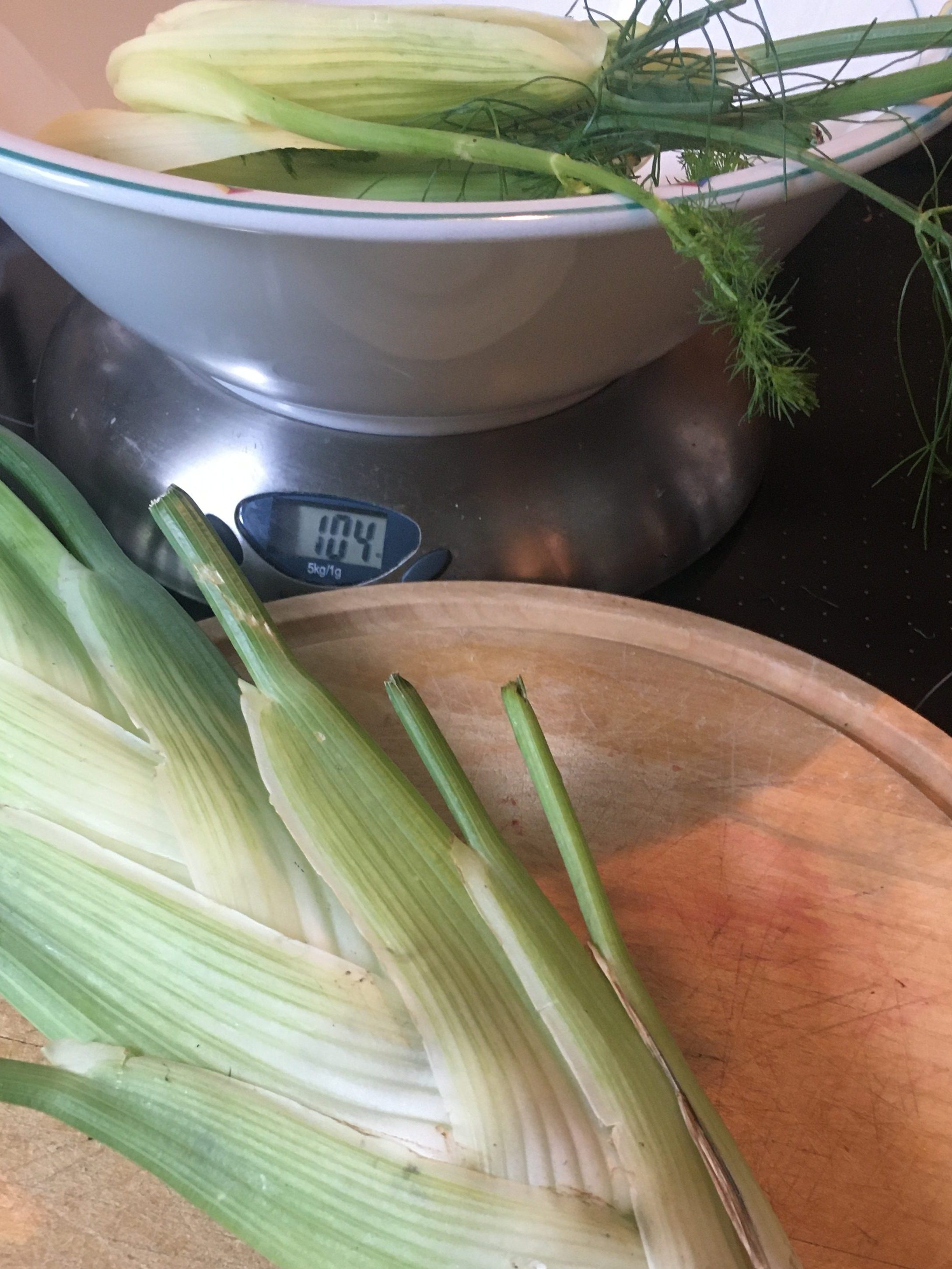 Zutaten: 500 g Fenchel, 2 Rote Bete (aus eigenem Anbau); 300 ml Wasser, 160 g Zucker, 100 ml weißer Essig, 1 TL Salz; das Gemüse schneiden, in heiße gut gesäuberte Gläser geben, mit heißer Lösung übergießen, die Gläser verschließen, abkühlen lassen; im Kühlschrank aufbewahren