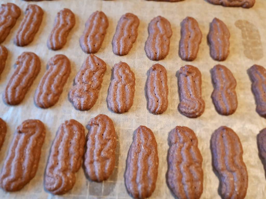 - Teig in eine Gebäckspritze oder Spritzbeutel mit großer Sterntülle füllen und ca. 4cm lange Stangerl auf ein mit backpapierbelegtes Backblech spritzen