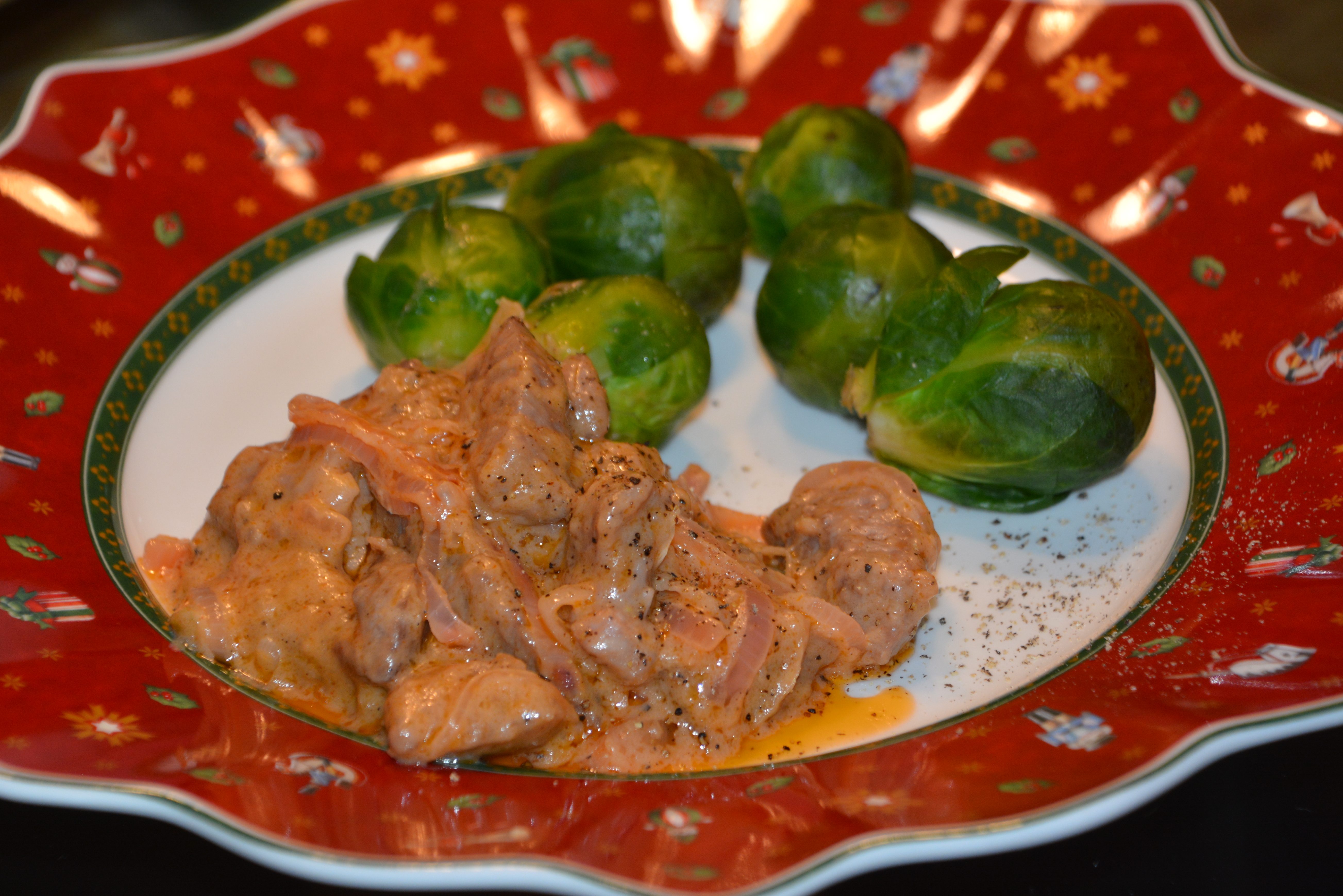 Fleisch in Streifen schneiden, im Mehl wälzen, scharf anbraten, zur Seite stellen; Zwiebeln in Halbringe schneiden, anbraten, zur Seite stellen; Essiggurke in Streifen schneiden, andünsten, mit Weißwein ablöschen, Brühe dazu geben, würzen, 10 Minuten köcheln, Creme Fraiche, Senf und Zwiebeln untermischen, noch 5 Minuten köcheln, zuletzt Fleisch hinzugeben und darin 1-2 Minuten ziehen lassen; sofort servieren. Klassisch – passt perfekt zum Kartoffel-Püree 🙂