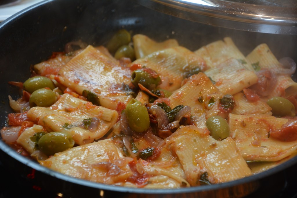 Zutaten: 500 g Pasta, 2 EL Olivenöl, 3 Knoblauchzehen zerdrückt, 2 rote Zwiebeln, dünn geschnitten, frische Petersilie, 800 g Dosentomaten, zerkleinert, 2 EL Kapern, 100 g Oliven entsteint, Sardinenfilets 3-4 feingeschnitten, Parmesan, gerieben, zum Servieren; Knoblauch, Zwiebeln in Öl anbraten, Tomaten zugeben und aufkochen lassen, danach 5 Minuten köcheln, Kapern, Petersilie, Sardinen, Oliven beigeben, weitere 5 Minuten köcheln, über in Öl leicht angebratene Pasta geben, mit Parmesan servieren