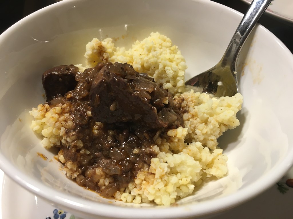 Zutaten: 600 g Rindfleisch, 100 g Speck, 4 große Zwiebeln, 1 Löffel Paprika, Salz, 1/2 TL Kümmel, 2 EL Mehl, Majoran, Knoblauch, scharfer Paprika; das Fleisch in Würfel schneiden scharf anbraten, Speck und Zwiebel dünsten und zum Fleisch geben, mit Paprika, Salz, Kümmel bestreuen, mit Mehl bestäuben, Wasser zugeben und ca. 1 Stunde garen; mit Majoran, geriebenem Knoblauch und mit scharfem Paprika abschmecken