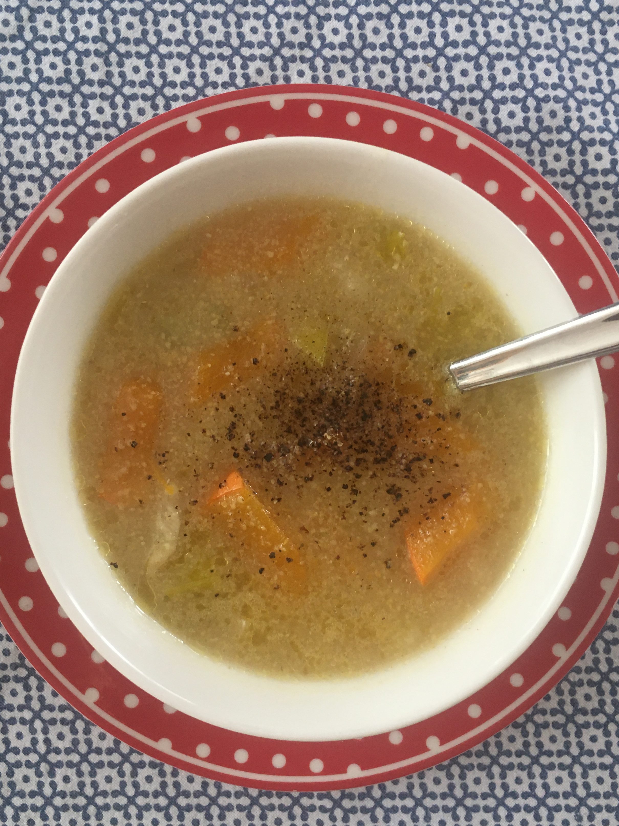 Zutaten: 200 g Polenta, 1 l Rinderbrühe, 1/4 Kürbis, 1 Stange Porree, 1/2 Fenchel Knolle, 1/4 Sellerie Knolle, Salz, Pfeffer, Rapsöl; das Gemüse klein schneiden; alles außer Kürbis 10 Minuten im Öl andünsten; alle Zutaten zur Brühe geben und 20 Minuten köcheln