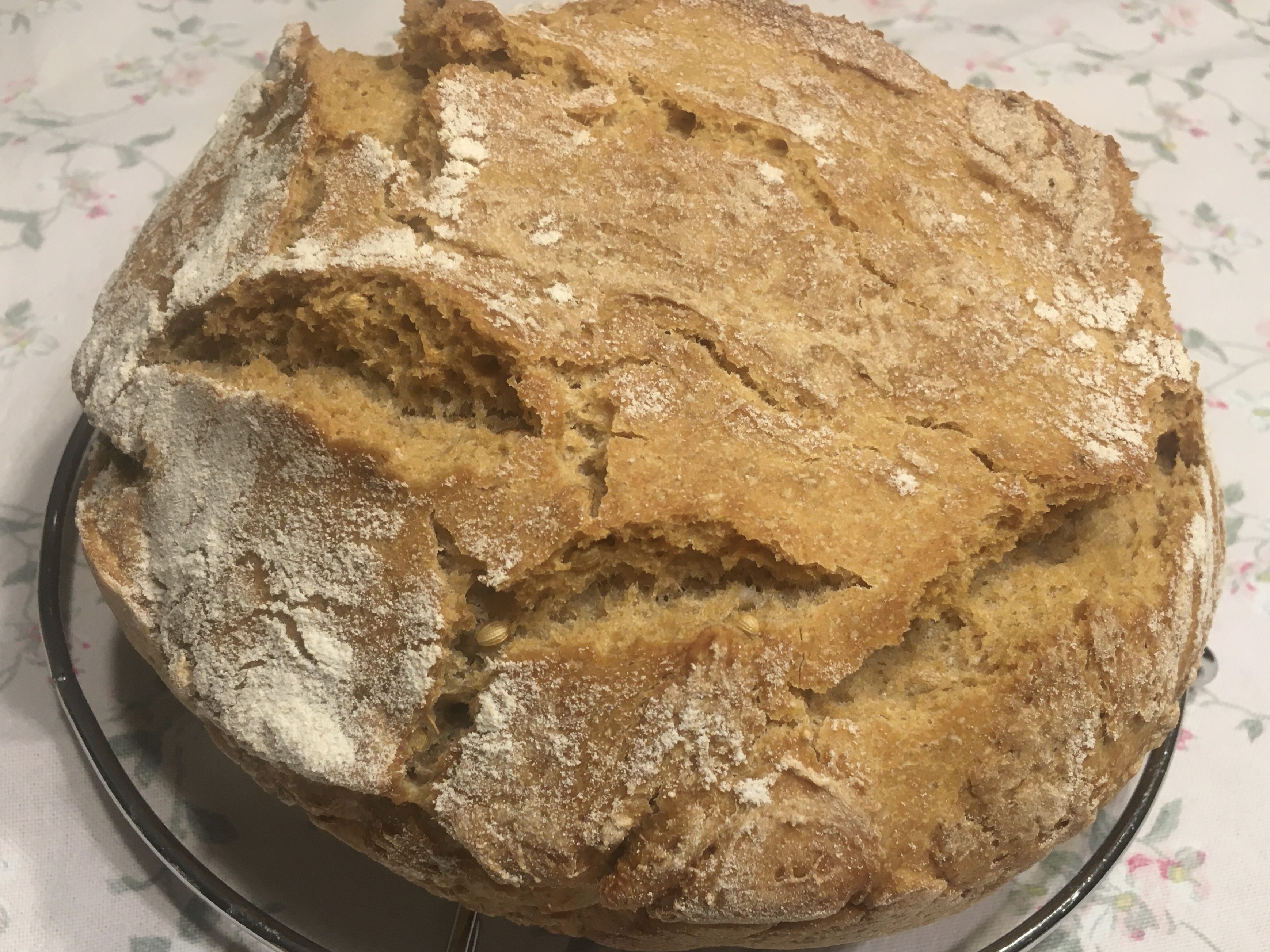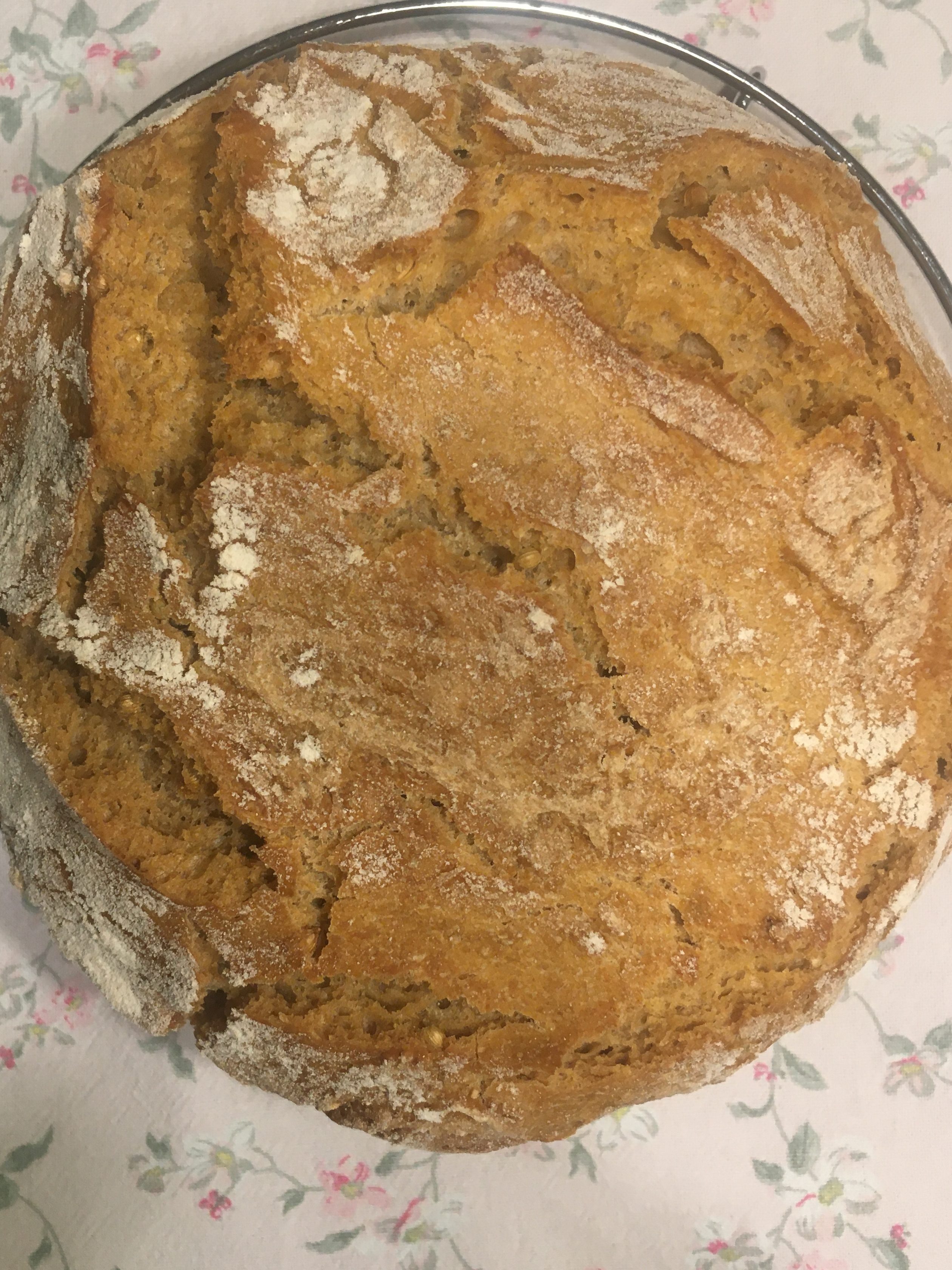 Zutaten: 515 g Weizenmehl, 90 g Dinkelmehl, 380 g Wasser, 12 g Salz, 0,5 g Hefe; alle Zutaten zum Teig verarbeiten, 24 Stunden reifen lassen, alle 8 Stunden dehnen und falten; den Backofen mit einem gusseisernen Topf auf 250 grad vorheizen, 45 Minuten bei 230 Grad backen