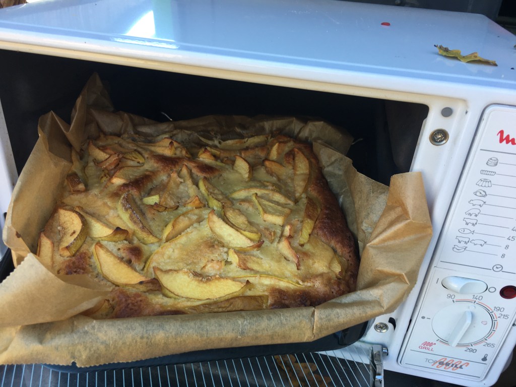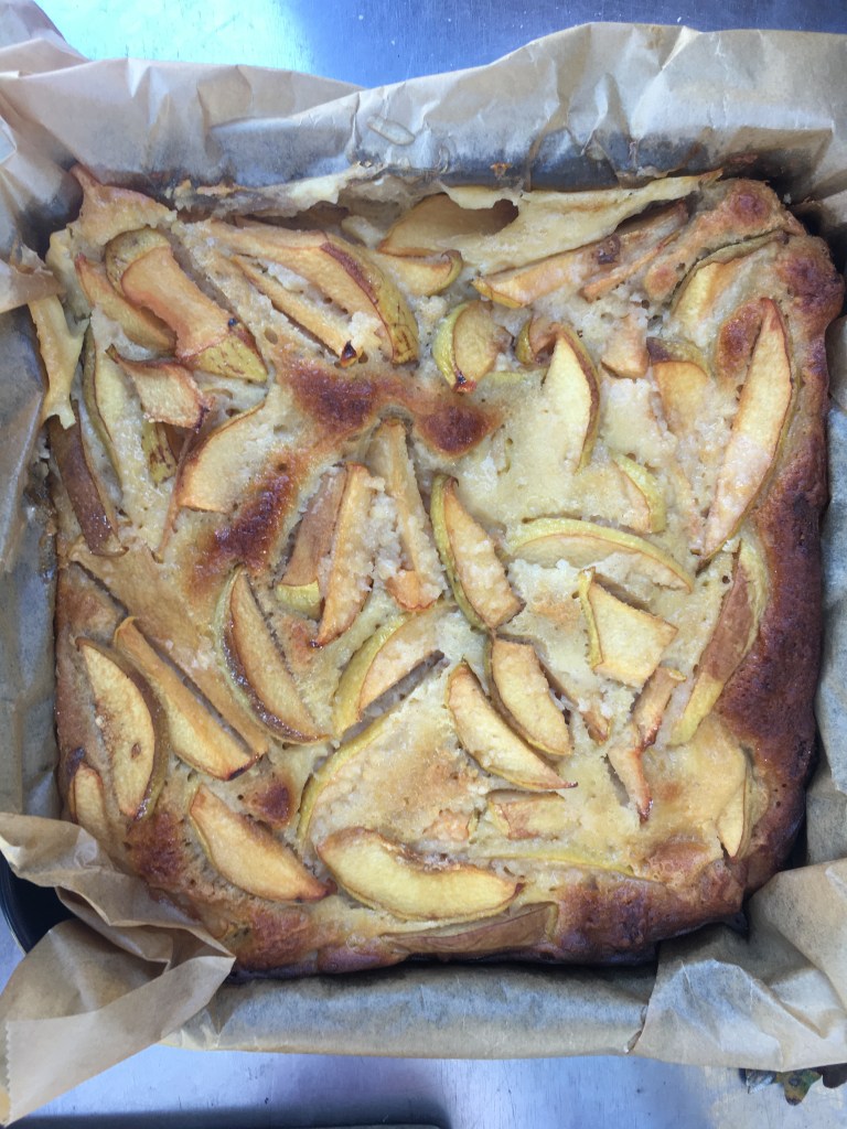 Zutaten: Hefeteig 2 Stunden reifen lassen: 180 g Mehl (ich hatte gemischt Vollkorndinkel und Vollkornweizen), 30 g Zucker, Salz, 25 g Butter, 10 g Hefe, 50 ml Milch, 1 Ei; Belag: 50 g Weizengrieß, 3 Quitten in Scheiben schneiden und auf dem Teigboden verteilen; Guß: 50 ml Milch mit 25 g Mehl (Dinkel) in einem Topf verquirlen und aufkochen lassen, danach abkühlen lassen, zusammen mit Salz, 1/2 Pck. Vanillezucker, 50 g Zucker, 45 g Butter, 1 Ei aufschlagen, über den Kuchen zusammen mit etwas Zucker verteilen; im vorgeheizten Ofen bei 180 Grad Umluft 1 Stunde backen.