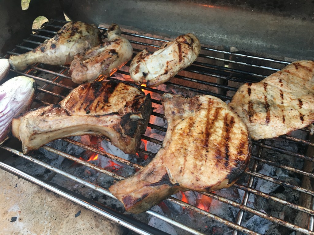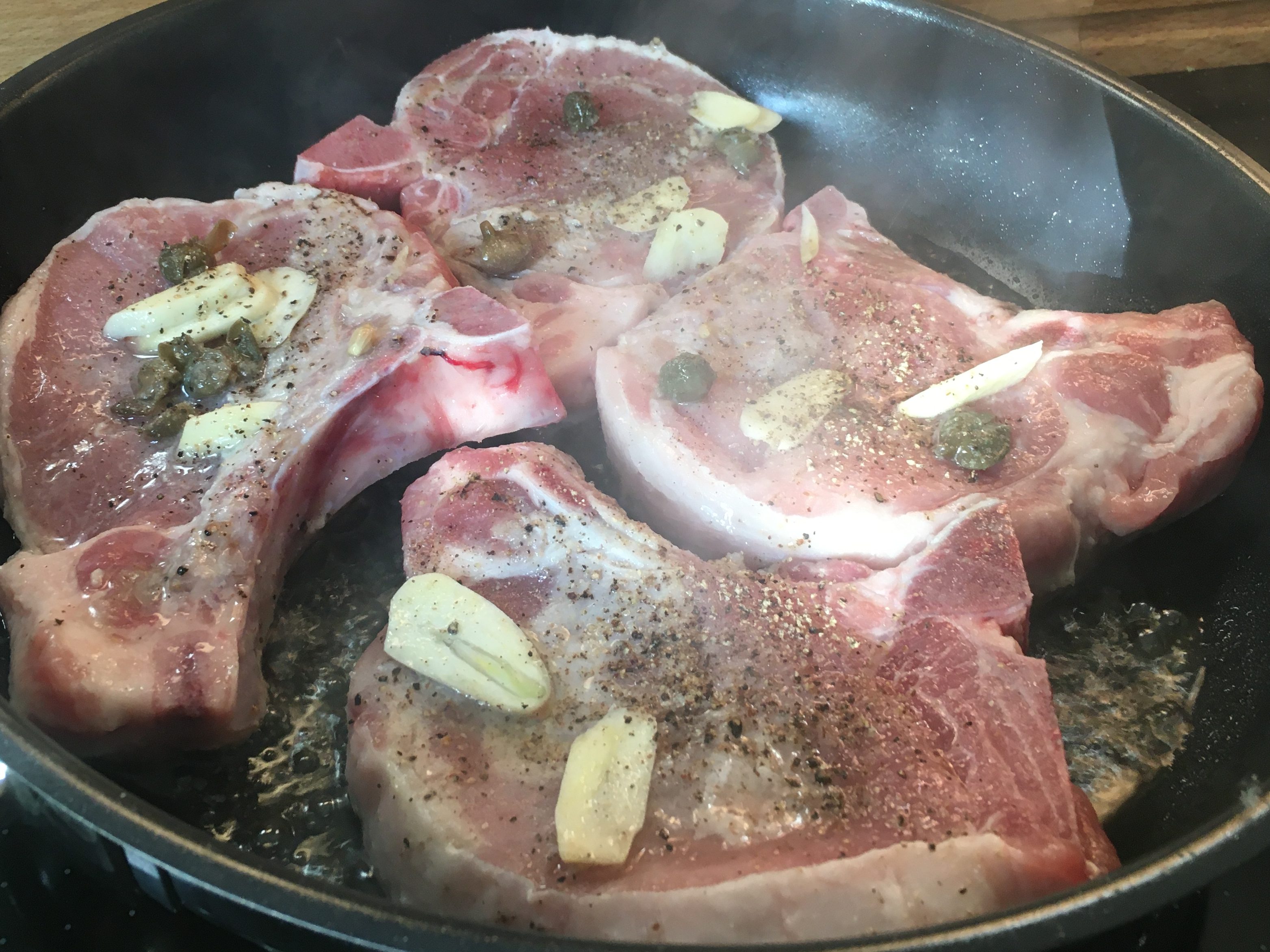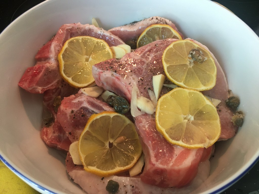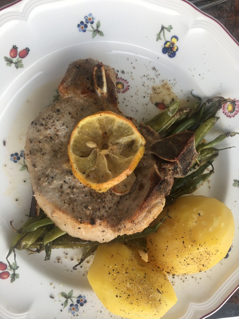 Zutaten: ca. 1,5 kg Schweineschulter 8-10 Stunden marinieren (Salz, Pfeffer, 200 ml Rose instrischer Herkunft), scharf von allen Seiten anbraten; Gemüse beliebig viel (Sellerie, Porree, Möhren) in Olivenöl andünsten, zusammen mit Fleisch ca. 2,5 Stunden unter einem Deckel bei 150 Grad Umluft in einem vorgeheiztem Backofen schmoren lassen, danach ca. 30 Minuten – ohne Deckel im Grillmodus backen.