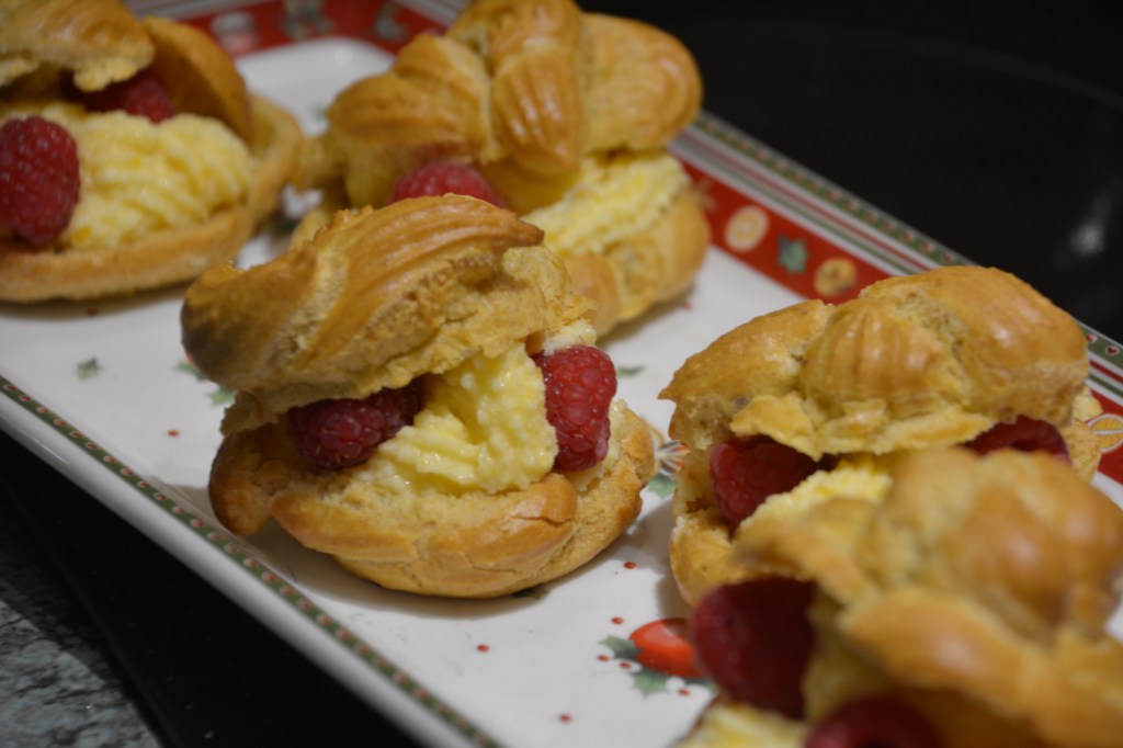 Zutaten: 6 Eigelb mit 350 g Zucker vermischen, 250 ml Milch und 2 TL Mehl zugeben, alles aufkochen, ständig rühren, abkühlen lassen, 300 g Butter untermischen, erneut abkühlen, mit Hilfe eines Spritzbeutels die Profiteroles füllen