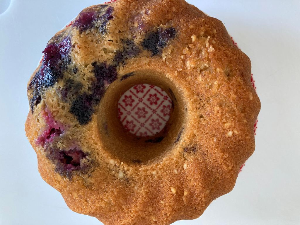Zutaten: 3 Eier mit 100 g Zucker verrühren; langsam 150 ml Öl, 150 ml Eierlikör und danach 150 g Mehl (vermischt mit etwas Backpulver) und 50 g Haselnüsse (gehackt) dazu geben, alle Zutaten glatt zusammen verrühren, in eine Backform füllen, 150 g Blaubeeren drauf tun und 45 Minuten bei 150 g Umluft backen.