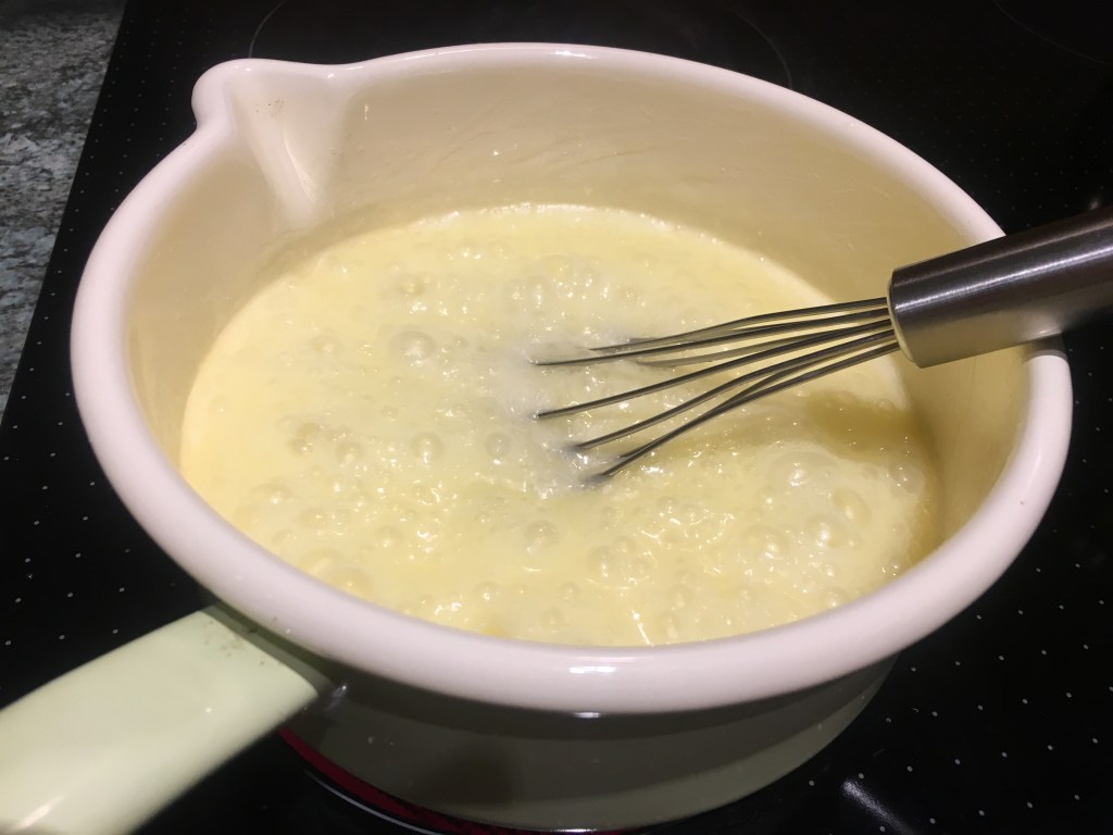 - zwischenzeitlich den Eischnee schlagen, den Zucker dazu geben und weiter schlagen bis der Eischnee feinporig und fest wird