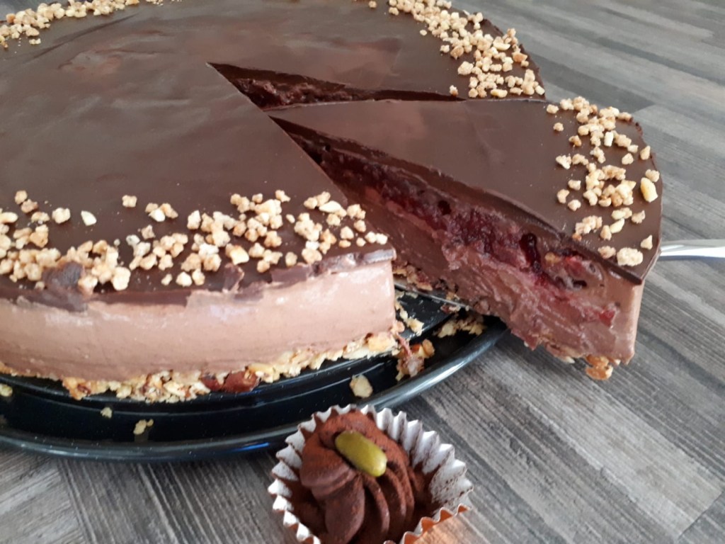 - Sahne steifschlagen und auf der Kirschmischung verteilen